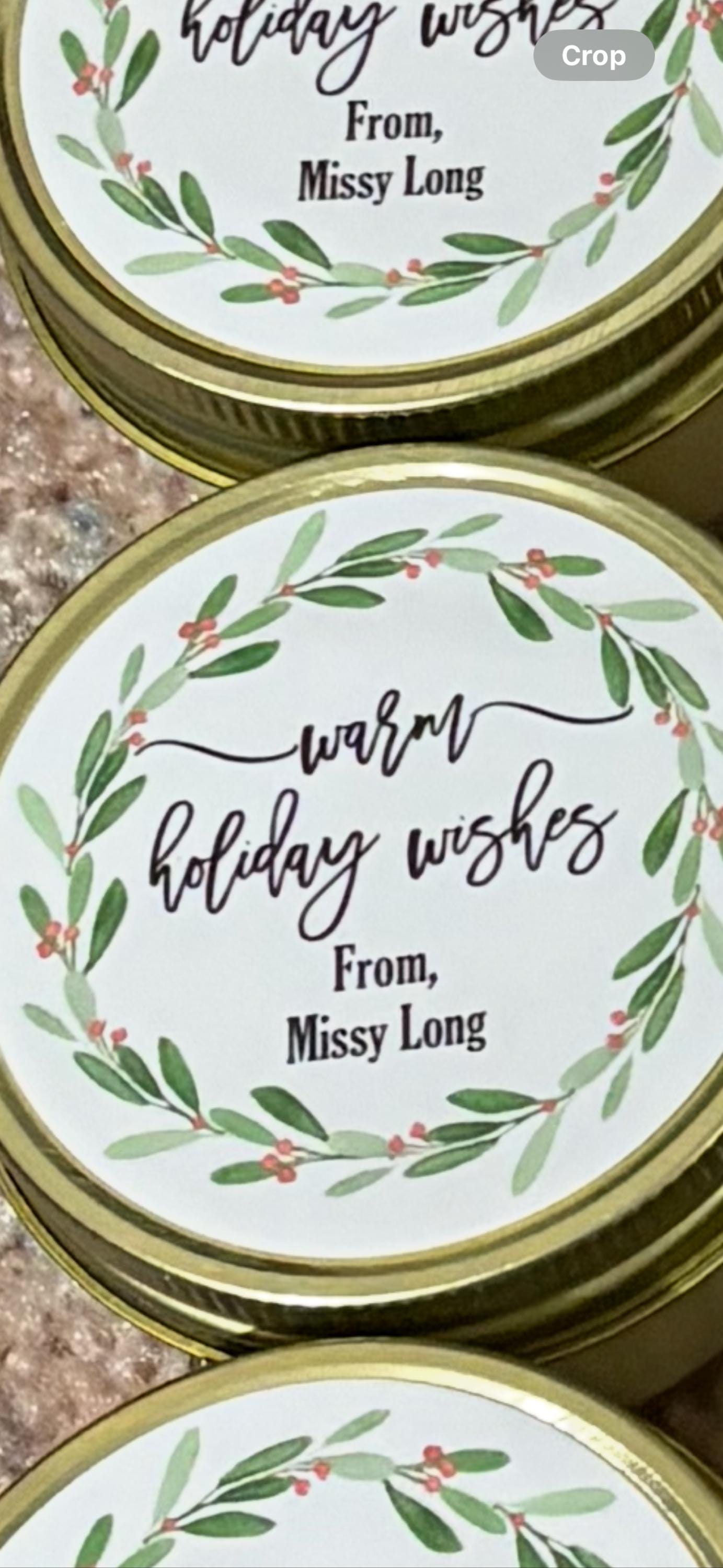 Celebrate the season with our personalized Holiday candle favors. All of our candles are made with 100% American grown, eco-friendly soy wax, and we only use clean burning fragrance and essential oils to scent our candles. Our candles are always free of dyes, harsh chemicals and pollutants and are hand poured in our shop in Laguna Beach, California. A clean candle is a better candle, better for you and better for the environment.