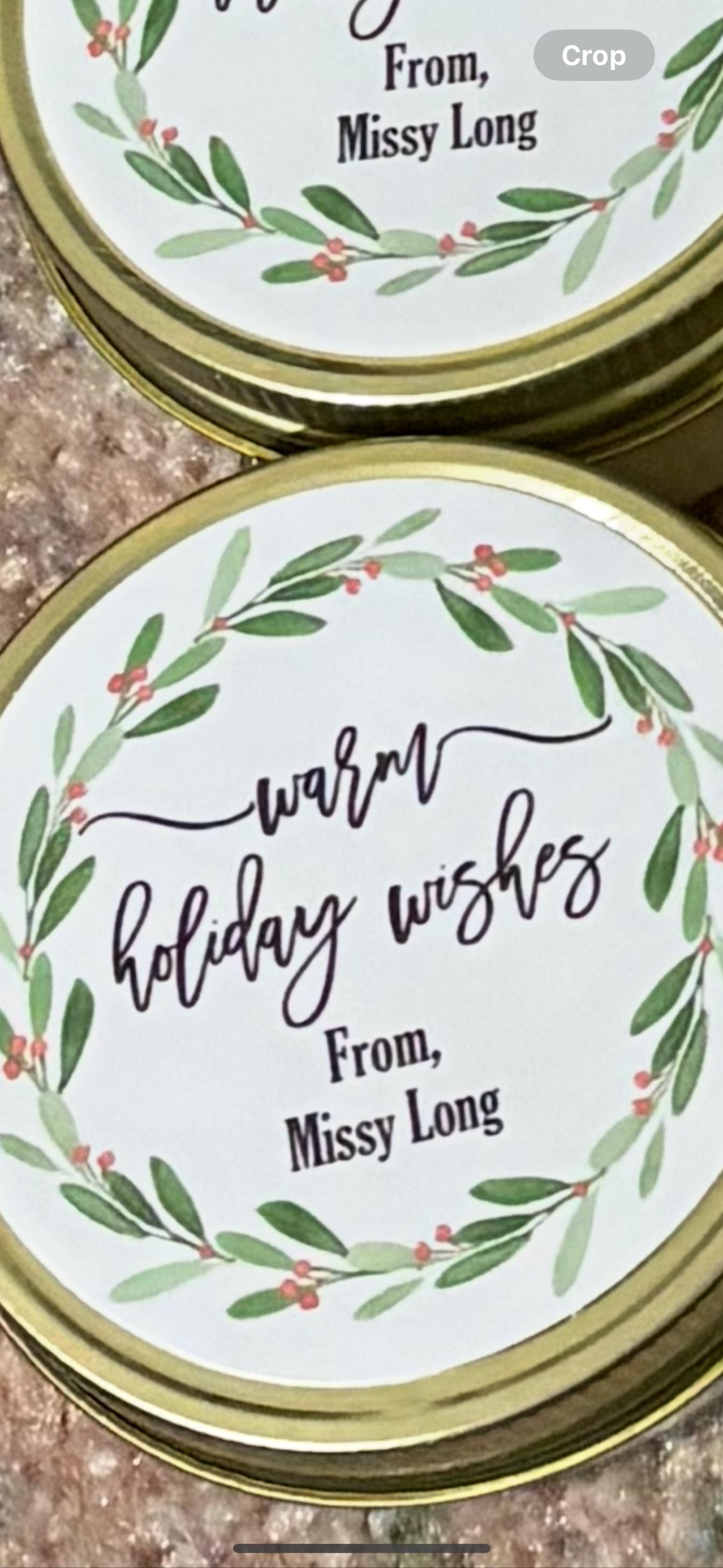 Celebrate the holiday season with our personalized Christmas candle favors. All of our candles are made with 100% American grown, eco-friendly soy wax, and we only use clean burning fragrance and essential oils to scent our candles. Our candles are always free of dyes, harsh chemicals and pollutants and are hand poured in our shop in Laguna Beach, California. A clean candle is a better candle, better for you and better for the environment.