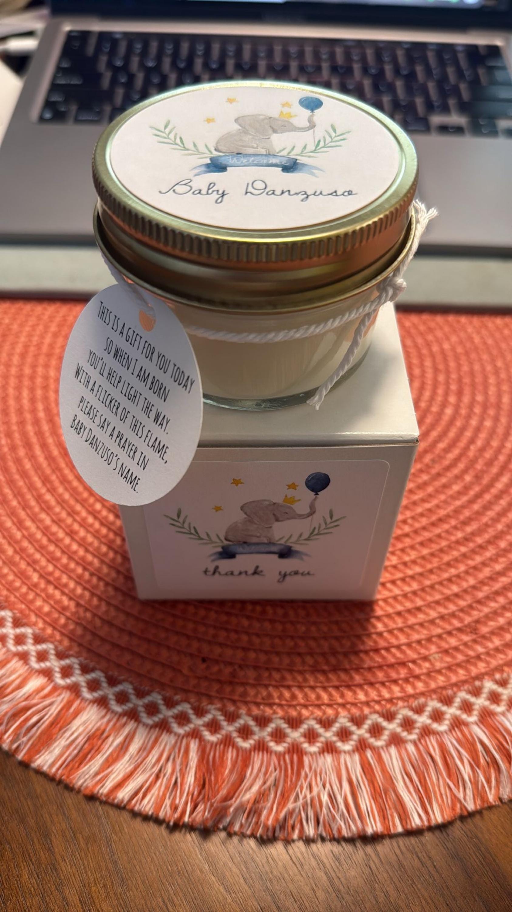 We are beyond pleased with the candles and boxes we ordered for our baby shower favors. I would highly recommend to anyone!! The quality, prompt service and shipment, the vanilla scent, the arwook on the stickers... perfection!! Thank you so much Tawnya!! Cherie Yetter
